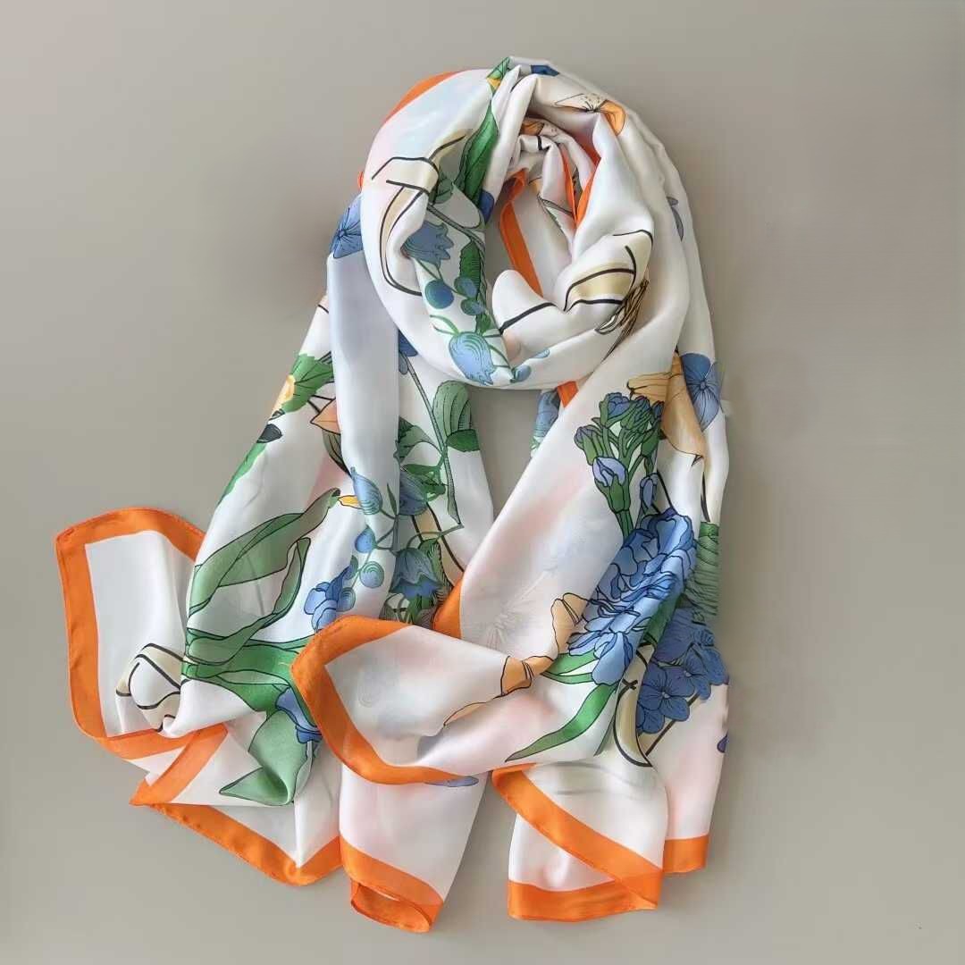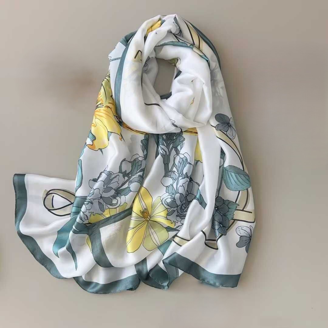 add a touch of floral magic to your look with this gorgeous scarf! perfect for adding a pop of color and personality to any outfit.