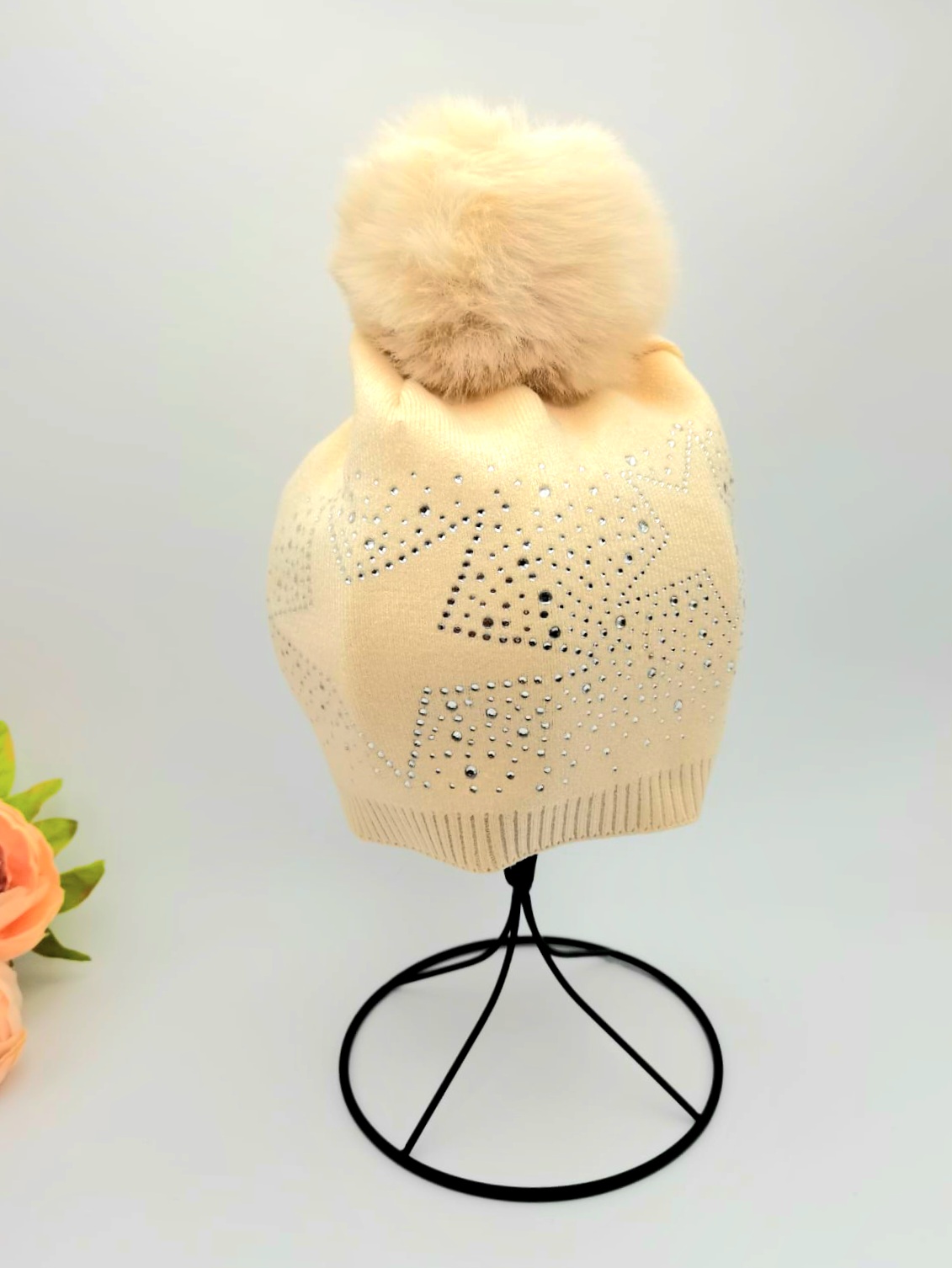 2. **Pom Pom**: Features a faux fur pom pom that is detachable, allowing for easy cleaning or style customization.
